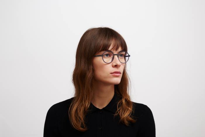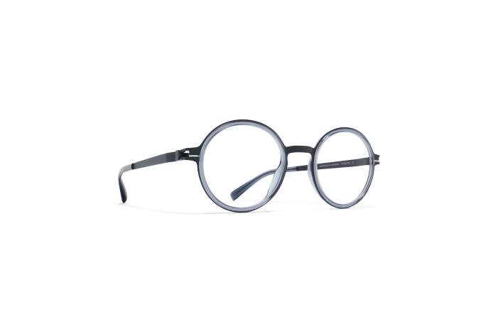 Lavet Af Letvægts Rustfrit Stål, Dayo I Indigo/dybt Hav Med Klare Linser Er En Rund Formet Optisk Ramme Fra Mykita Acetat Ringekollektionen. Håndlavet I Berlin.