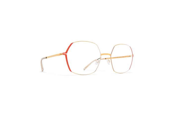 Lavet Af Letvægts Rustfrit Stål Og Slankt Acetat, Majvi I Blank Guld/daglilje Orange Med Klare Linser Er En Firkantet Optisk Ramme Fra Mykita Lite Acetat Kollektionen. Håndlavet I Berlin.