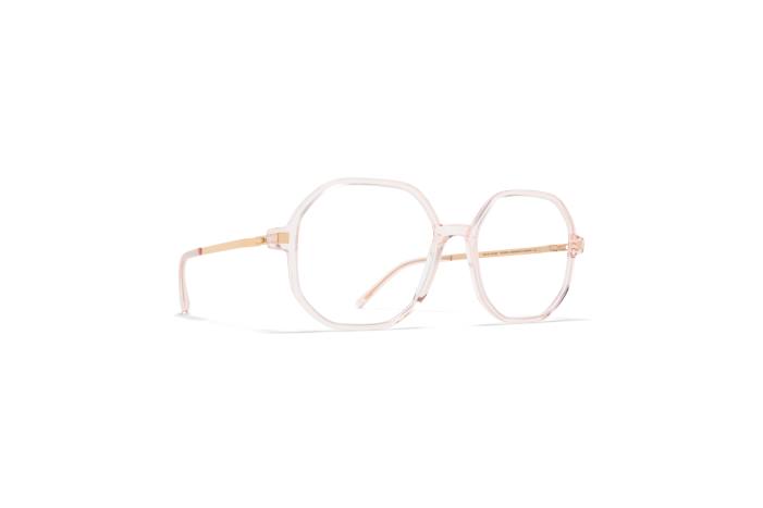Lavet Af Letvægts Rustfrit Stål Og Slankt Acetat, Hilla I C20 Rosenvand/champagneguld Med Klare Linser Er En Rund Formet Optisk Ramme Fra Mykita Lite Acetatkollektionen. Håndlavet I Berlin.