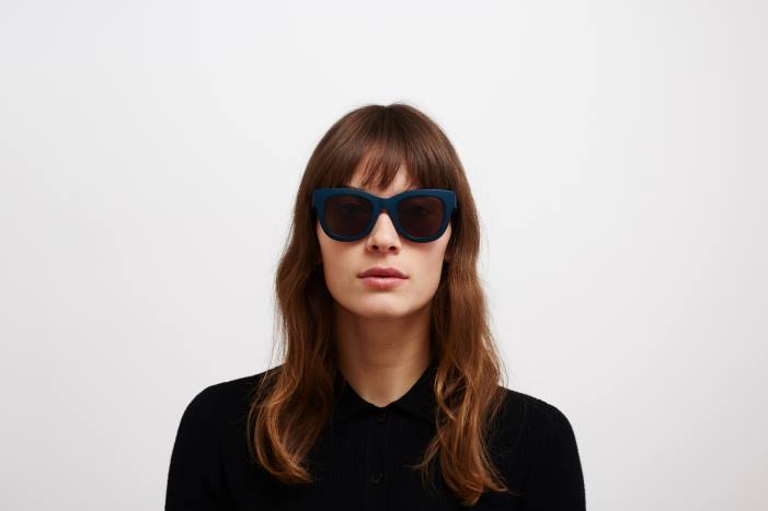 Lavet Af Mylon - Et Usædvanligt Let Og Slidstærkt Materiale - Dug I Md34 Indigo Med Brune Solide Glas Er Et Firkantet Solbrillestel Fra Mykita Mylon Kollektionen. Håndlavet I Berlin.